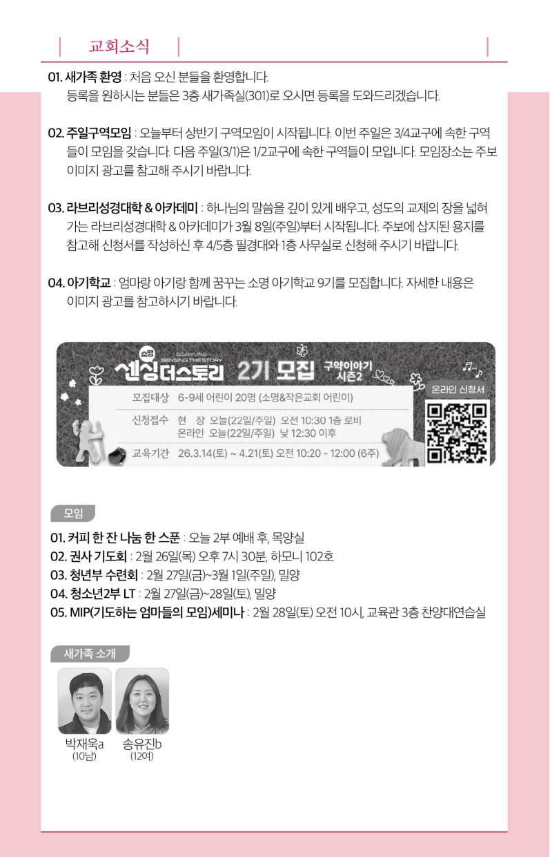 2026년 2월 22일 주보입니다.