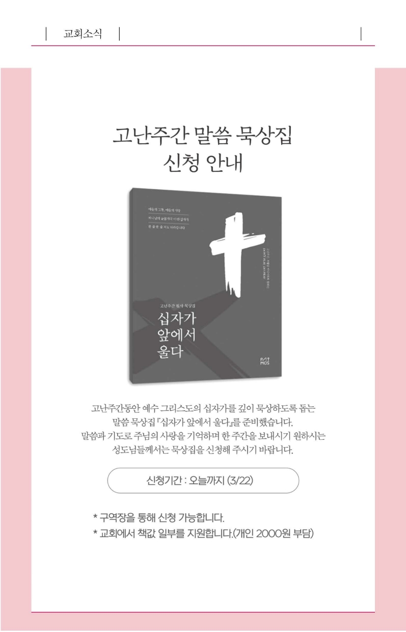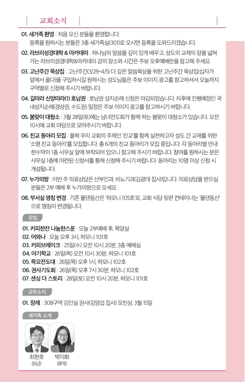2026년 3월 22일 주보입니다.