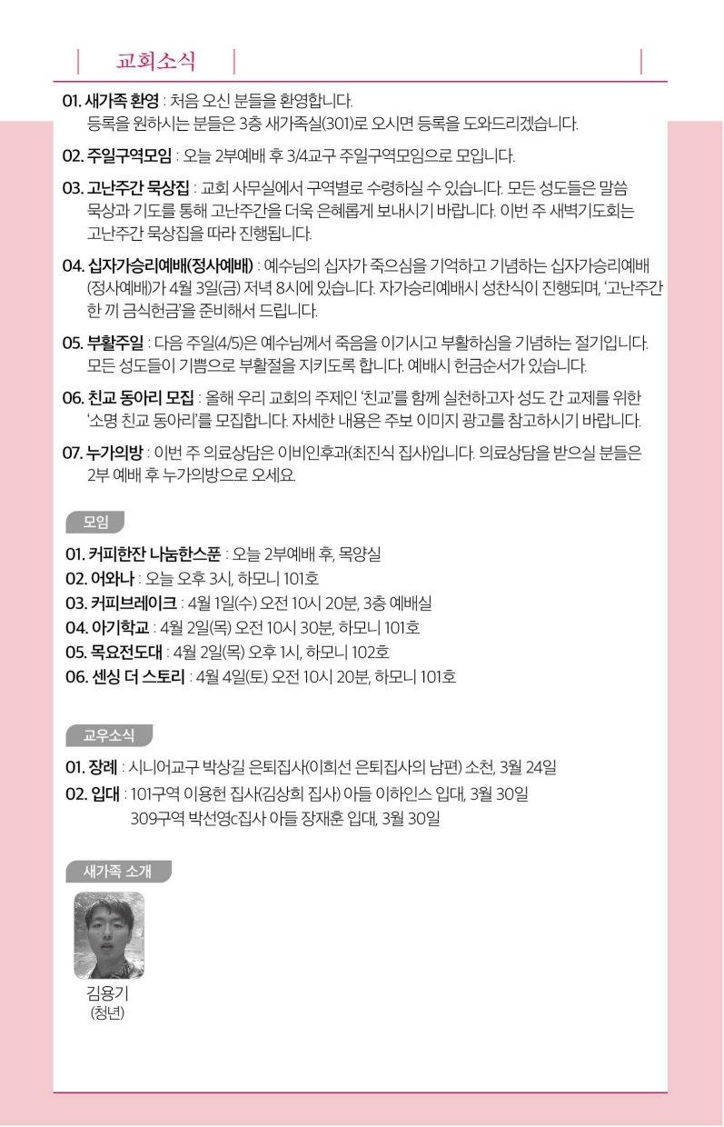 2026년 3월 29일 주보입니다.