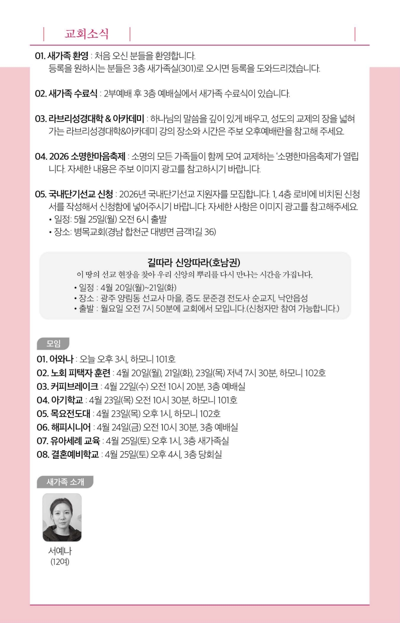 2026년 4월 19일 주보입니다.